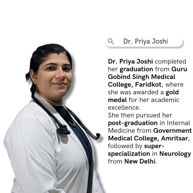 Dr. Priya Joshi provides expert diagnosis and treatment for brain, spine, and nerve disorders — using modern neurotechnology and a warm, patient-first approach.